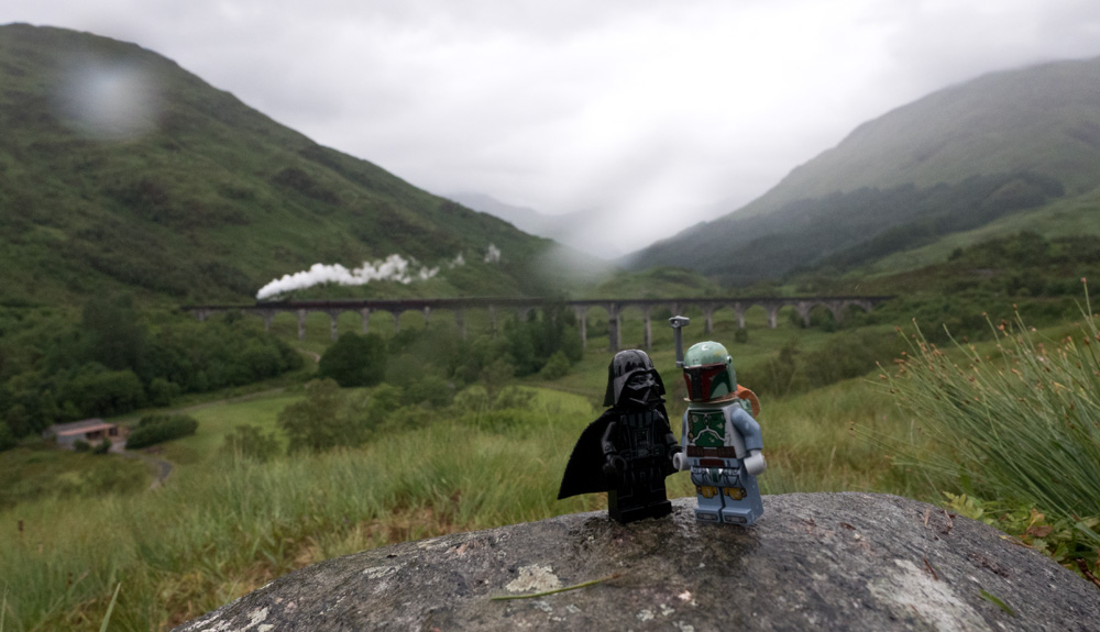 Treffen mit Bobba Fett am Glenfinnan Viadukt. Das Wetter war sehr schottisch.