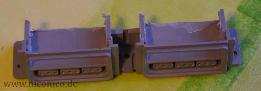 Dann habe ich das Frontstück für die USB-Anschlüsse modifiziert, indem ich die MemoryCard-Schächte aufgesägt habe. Vorher hab ich natürlich ausgemessen, dass dort vier USB Buchsen gut reinpassen.