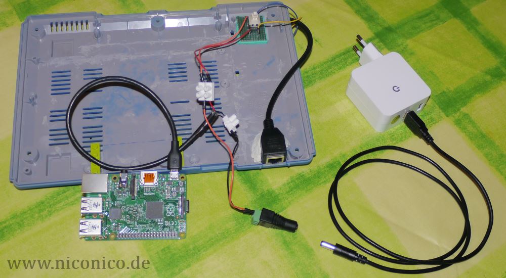 Es ist sehr wichtig, so kurze Kabel wie möglich zu benutzen. Auch wenn es erstmal scheint, das da jede Menge Platz im Gehäuse für den kleinen Raspberry Pi ist, relativiert sich das sehr schnell, wenn man versucht, die ganzen Kabel unterzubringen, geschweige denn noch einen aktiven Hub.