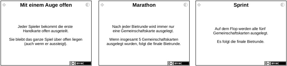 Es werden zwei getrennte Sets an Gemeinschaftskarten ausgelegt. Alle Spieler können aus ihren Handkarten und den Gemeinschaftskarten von Set 1