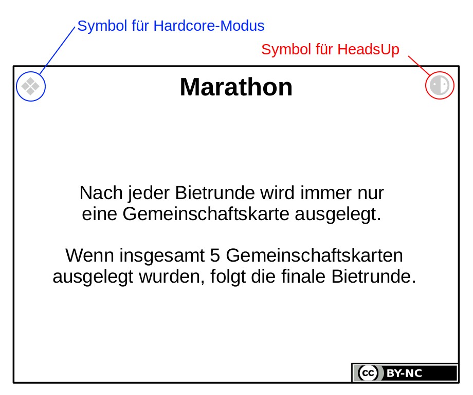 Dann gibt es noch die Hardcore-Variante, dabei werden die Ereigniskarten in zwei Stapel aufgeteilt (je nach Symbol in der linken oberen Ecke wird ein Stapel mit ❖-Karten und ein Stapel mit ✸-Karten gebildet).